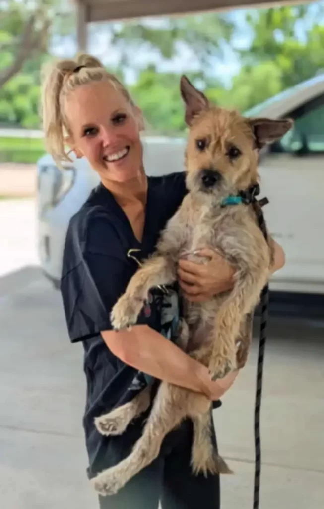 At sunrise, volunteer Tara Hall grabbed her car keys and drove straight to Cleveland. Tara, an experienced foster mom for stray dogs, had rescued many before, but this one seemed especially fragile.