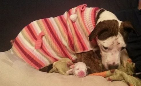 Penny lay down and gave a small whine, and soon a tiny puppy slid into the world.