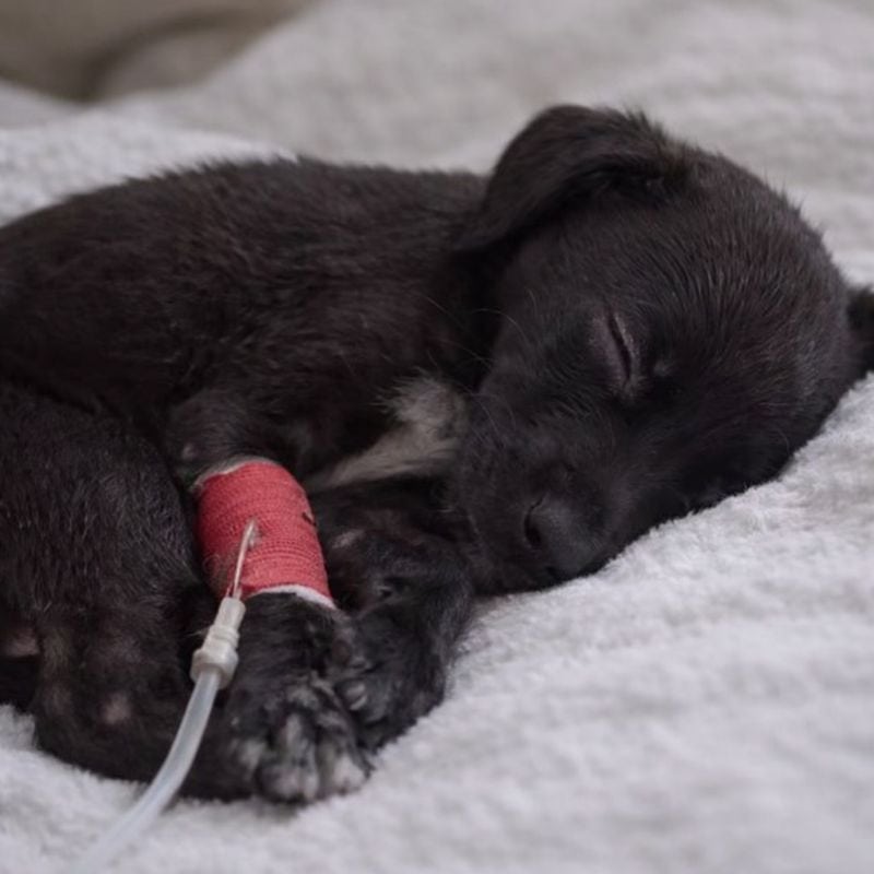That night, the puppy lay still under warm blankets.