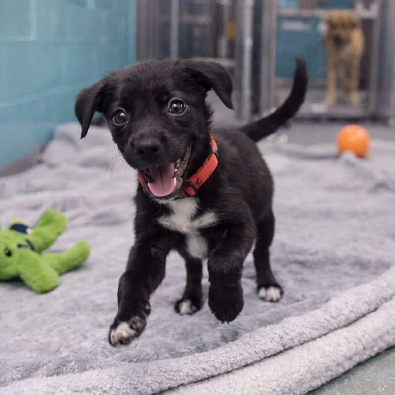 For the first time, the puppy wasn’t alone in the cold.