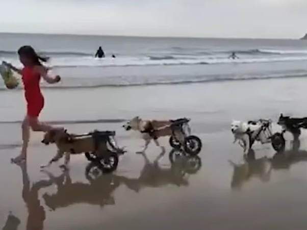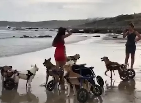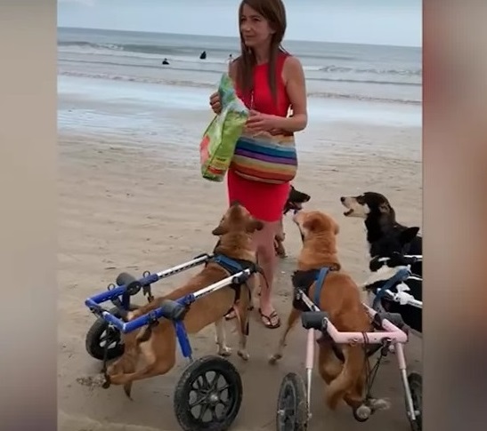 Salima’s 18 beloved dogs, all equipped with wheelchairs, raced her from one end of the beach to the other. These incredible canines, with only their front legs functional, proved that disability could never define their spirit or limit their zest for life.