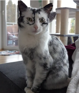 Ellie’s coat pigmentation was disrupted owing to vitiligo, an uncommon and non-dangerous condition.