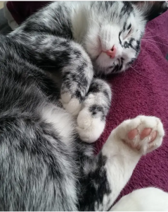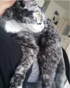 In March, the cat will turn three years old. She’s in good health, cheerful, and just as loving as she’s always been.