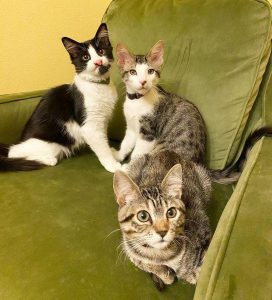When it came to fostering, Ashley had a strong desire for the triad to find a home together, but she knew it would be a difficult task. “Having three pet cats is a significant commitment.”