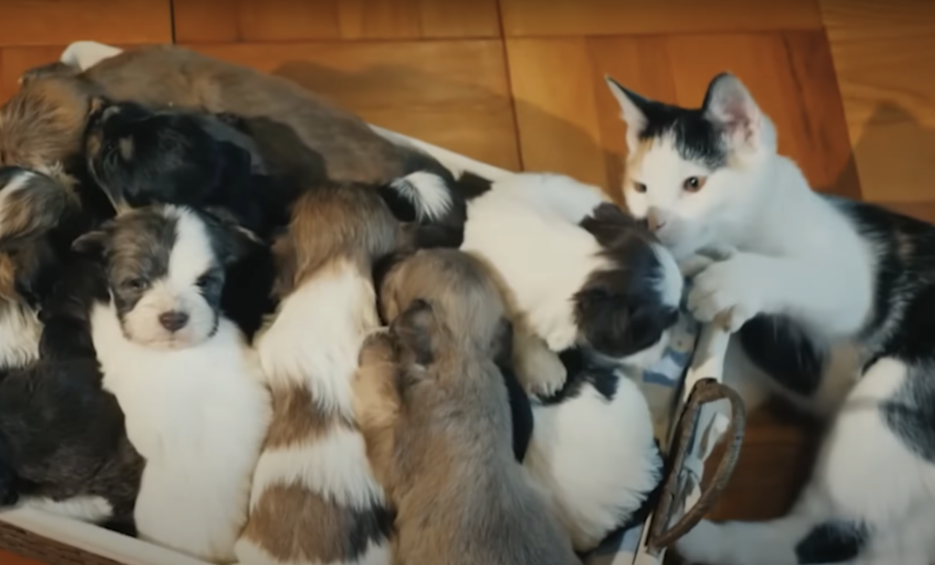 To the world, she was just a cat. But to those puppies, she was a hero.