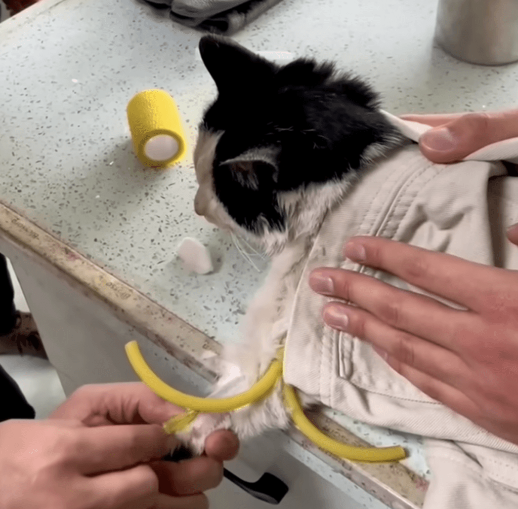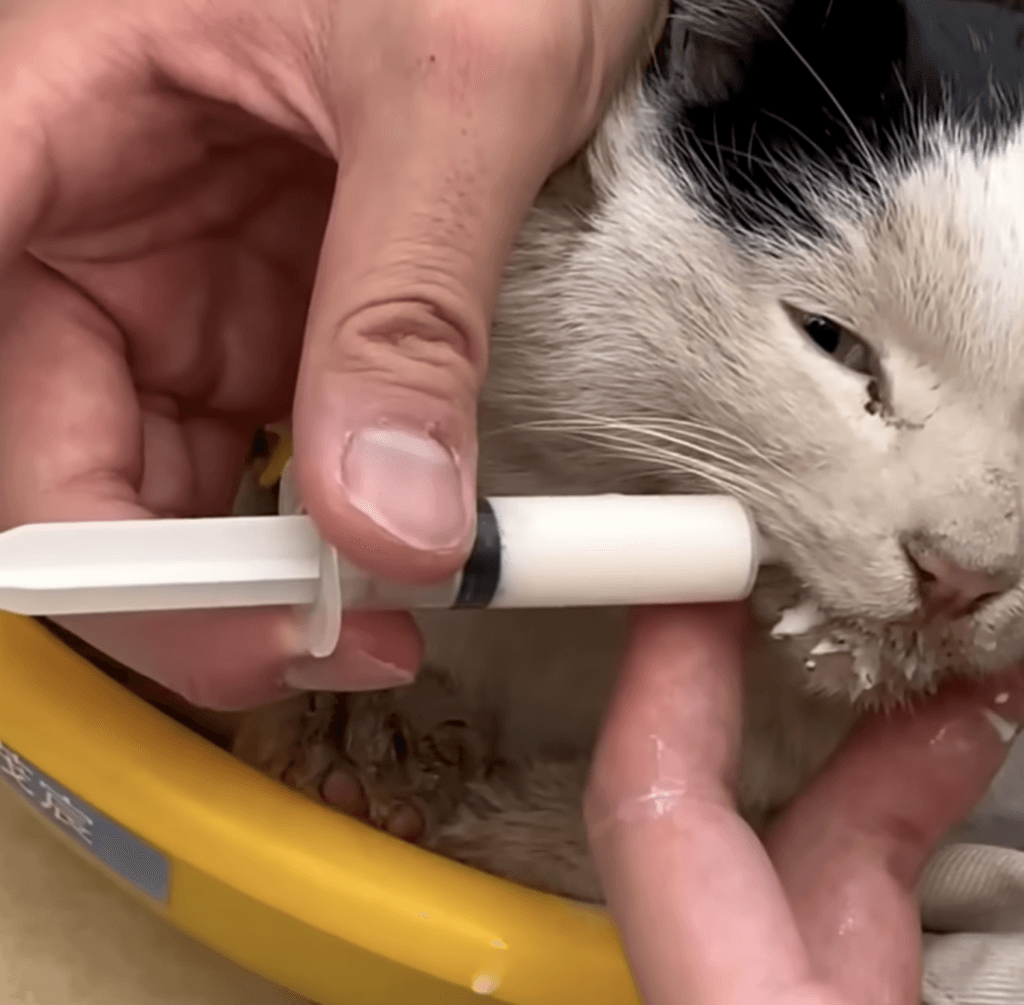 The vet administered three injections to stabilize the cat’s physical strength and blood pressure, but the prognosis was uncertain.