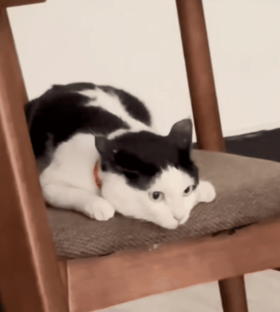 From lying in a puddle, on the brink of death, to zooming around like any healthy cat, this sweet “cow cat” has proven to be a symbol of resilience.