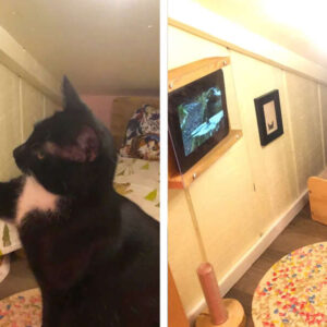 Guy Turns Behind-the-Wall Space Into A Cat’s Bedroom