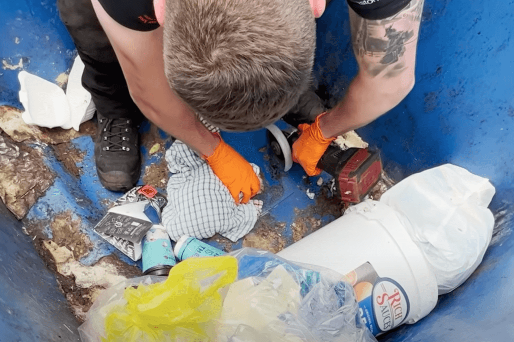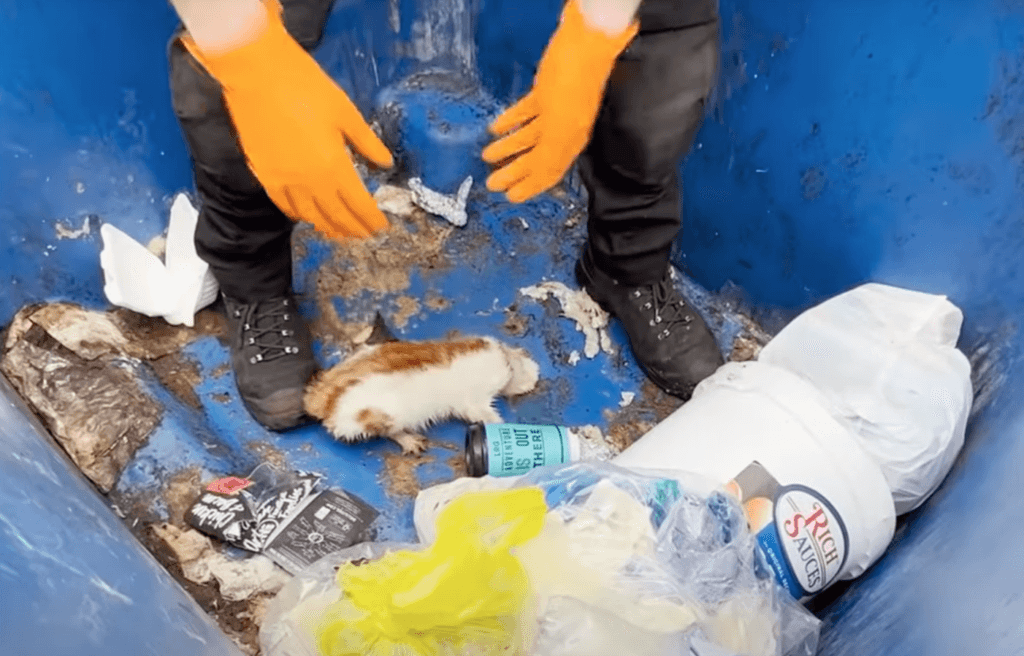 Gary followed the cries until he found the source of the noise: a tiny, stray kitten trapped at the bottom of a garbage bin.