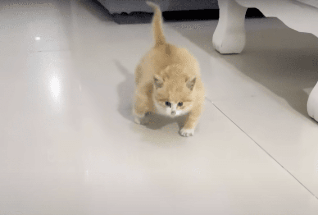 A month after his rescue, he was running, jumping, and playing like any normal cat.