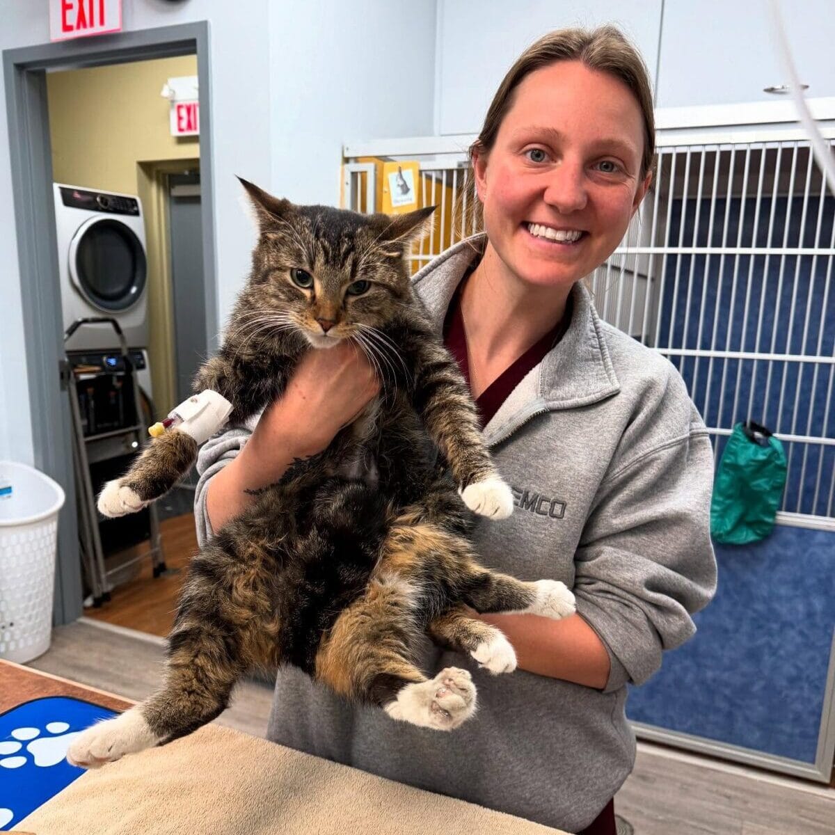 And if you’re wondering what she looks like post-surgery? She’s still just as striking, still that same sweet tabby, now just with one less complication.