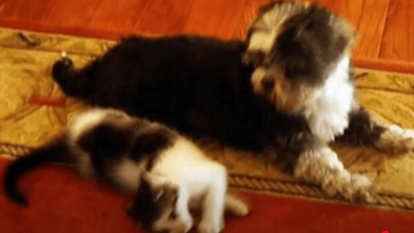 Curled up beside it, nestled safely in the dog’s fur, was a tiny kitten. And not only was the kitten alive and well, it was nursing.