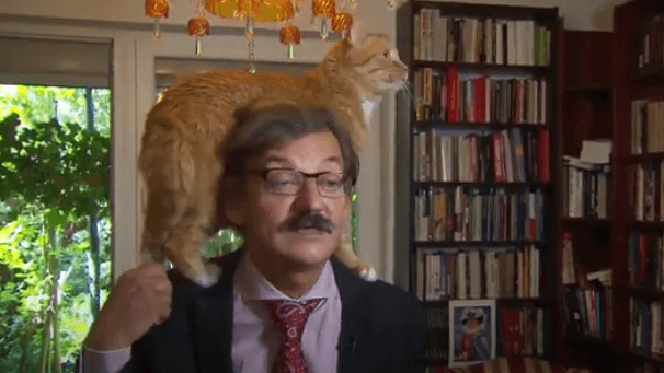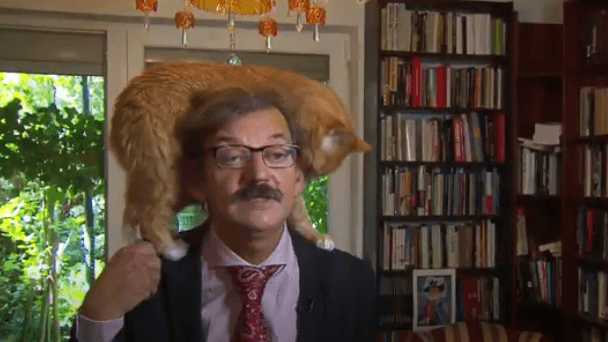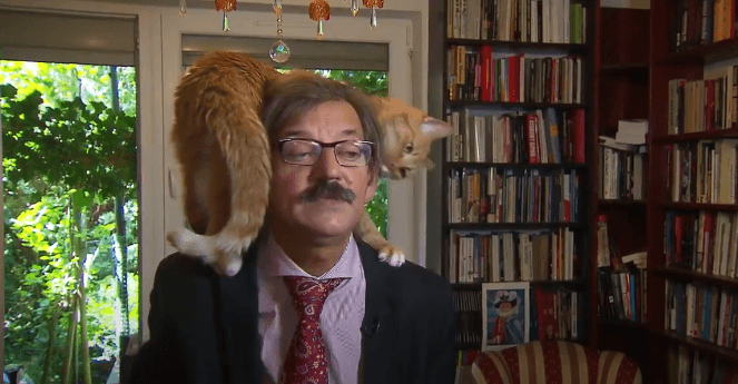 Targalski, a well-known political scientist, was speaking about serious global matters when his orange cat casually decided to join him on screen.