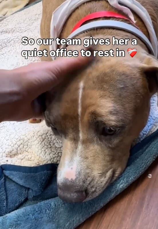 The staff speaks gently to her, and their voices are kind.