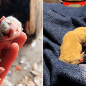 At just five weeks old, he was discovered in a hoarder’s house, frail and fighting for his life.