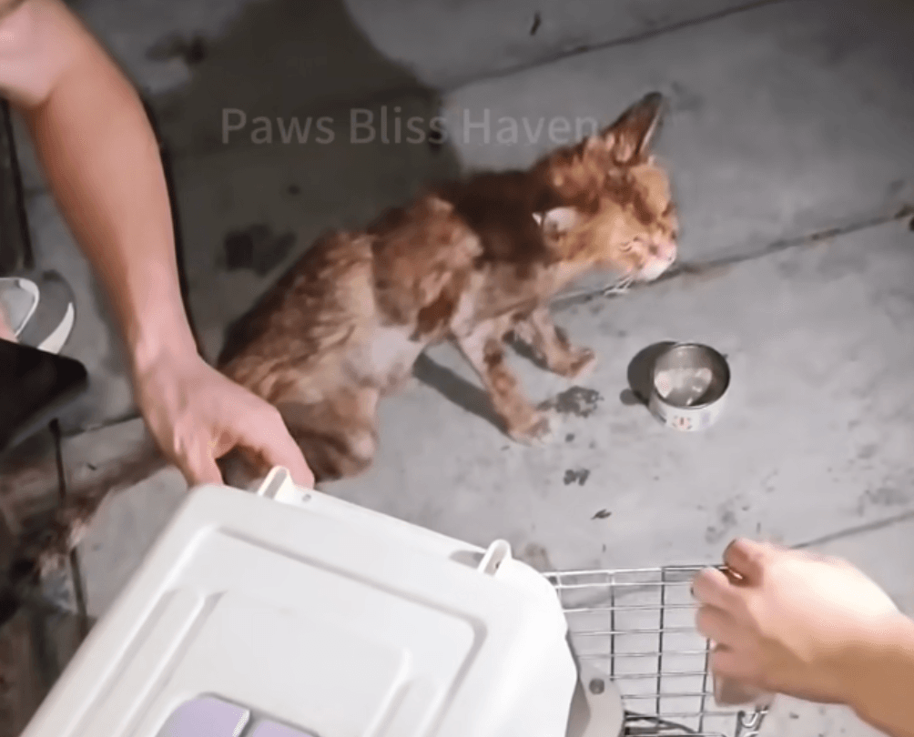 When the rescue team finally showed up, the cat was gently guided into a carrier and taken in for urgent care.