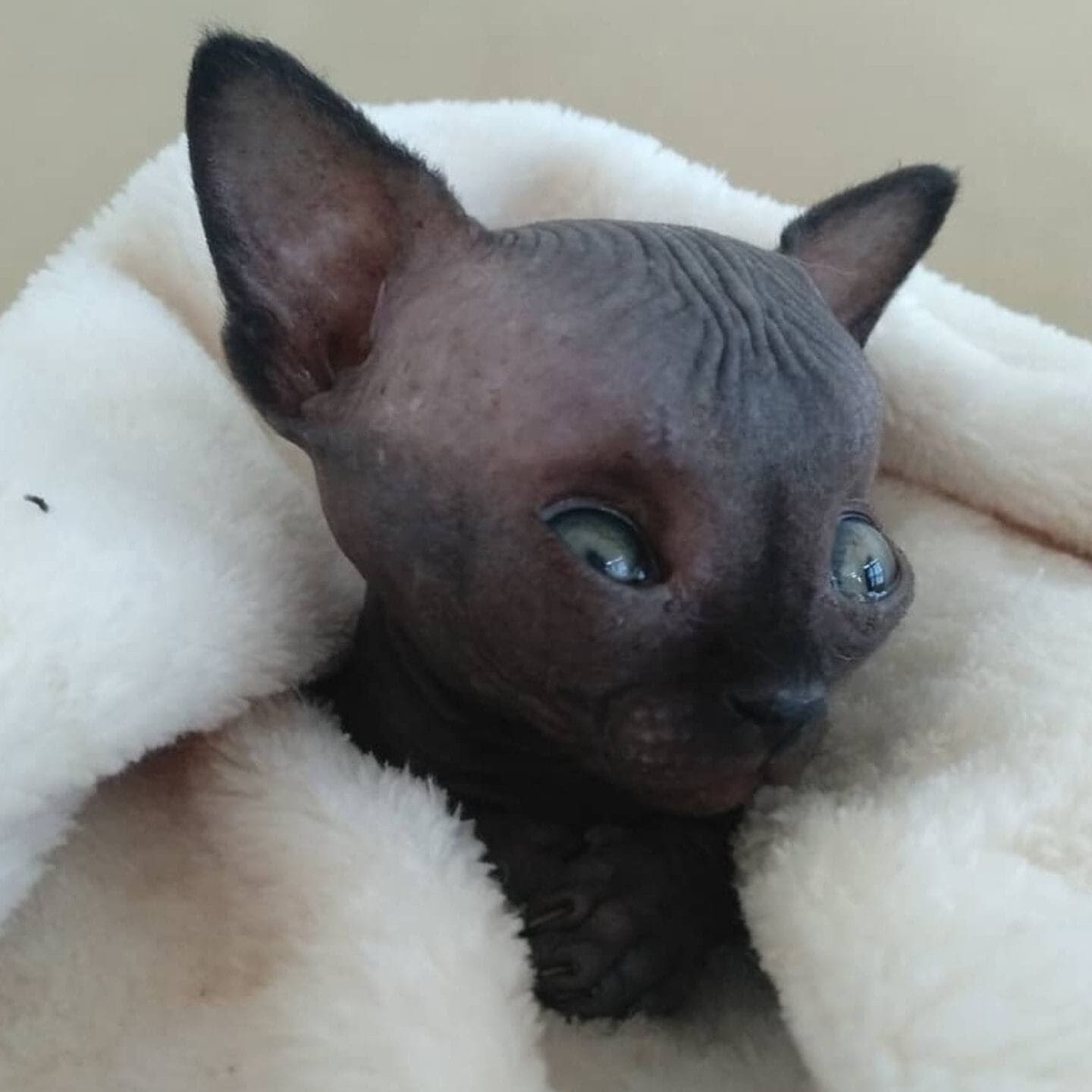Her breeder posted pictures of her littermates, all of them healthy, playful, and hairless like her.