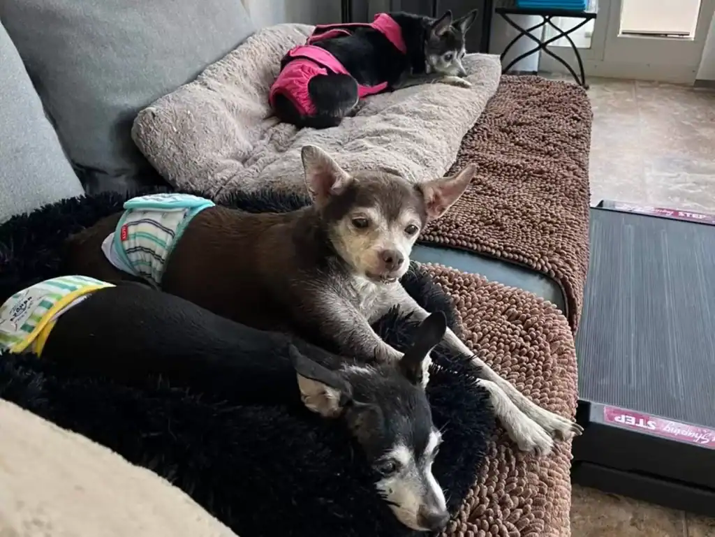 Bella, Hudson, and Ciroc now spend their days wrapped in gentle care, warm blankets, and the soft hands of people who believe senior pets matter.