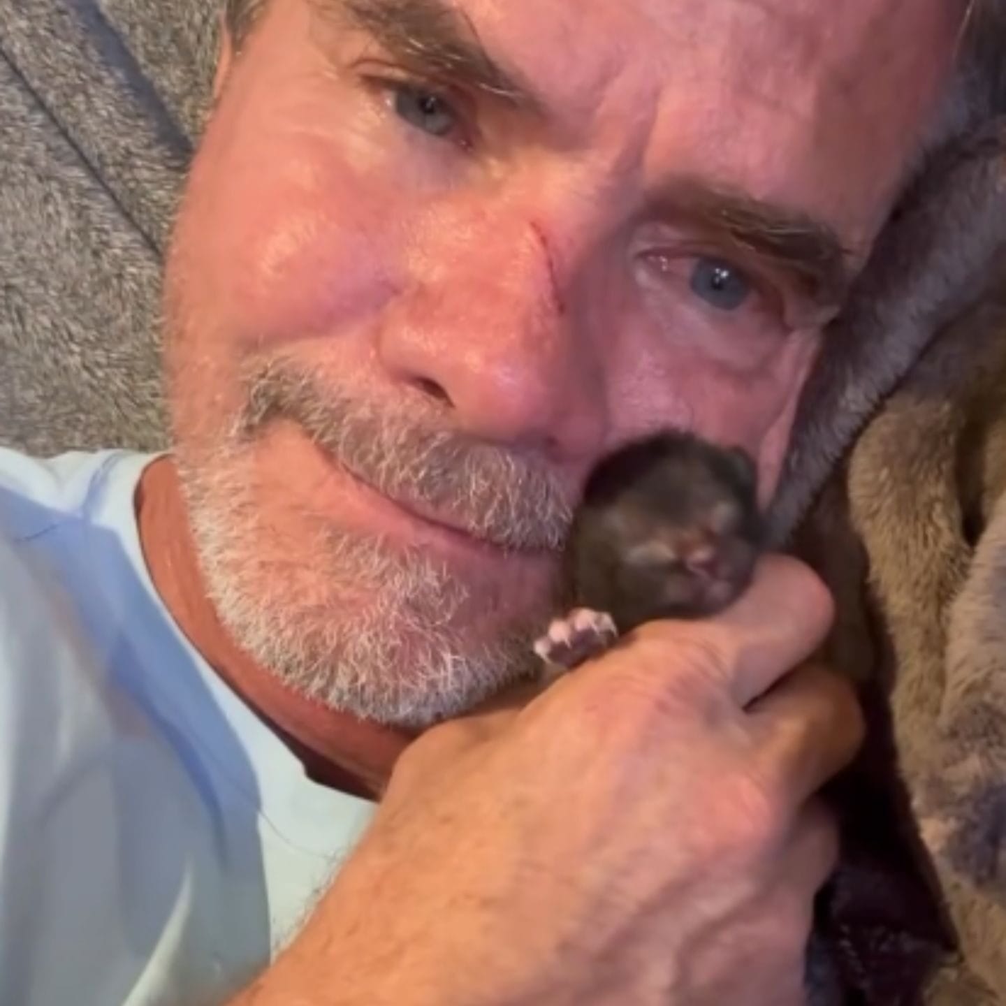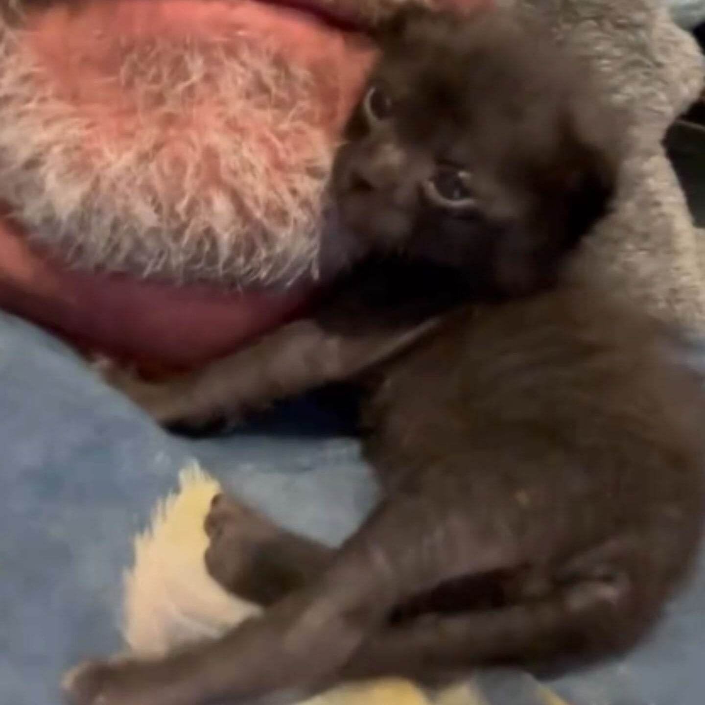 Nestling under David’s beard, Javie would curl up and drift off to sleep, purring softly against the warmth of his foster dad’s chest.