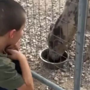 He rested his chin against her fingers as though making a quiet introduction. The woman’s response was immediate — her eyes filled, her smile deepened, and she whispered something only he could hear.