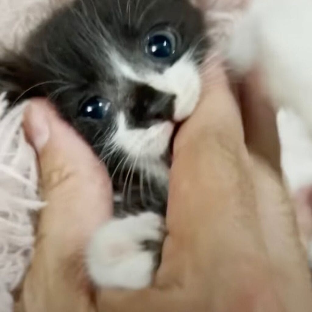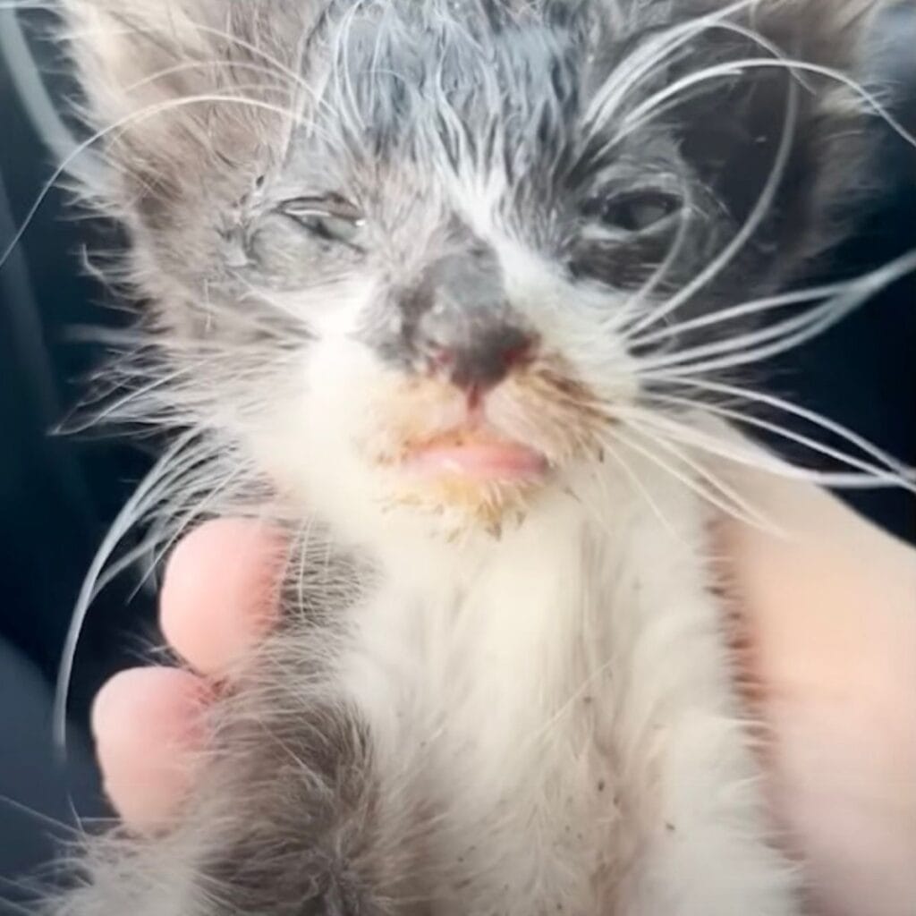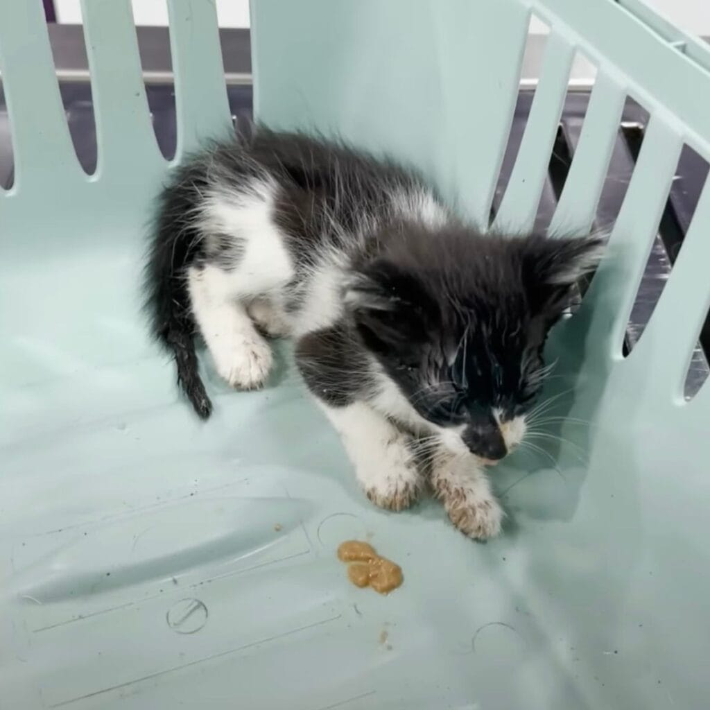 The kitten was malnourished, dehydrated, and so weak he couldn’t even eat.