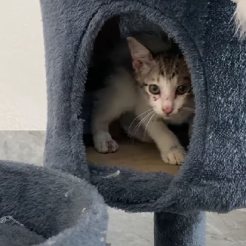 From batting around colorful balls to leaping onto the cat tree, it was clear this little guy was making up for lost time.