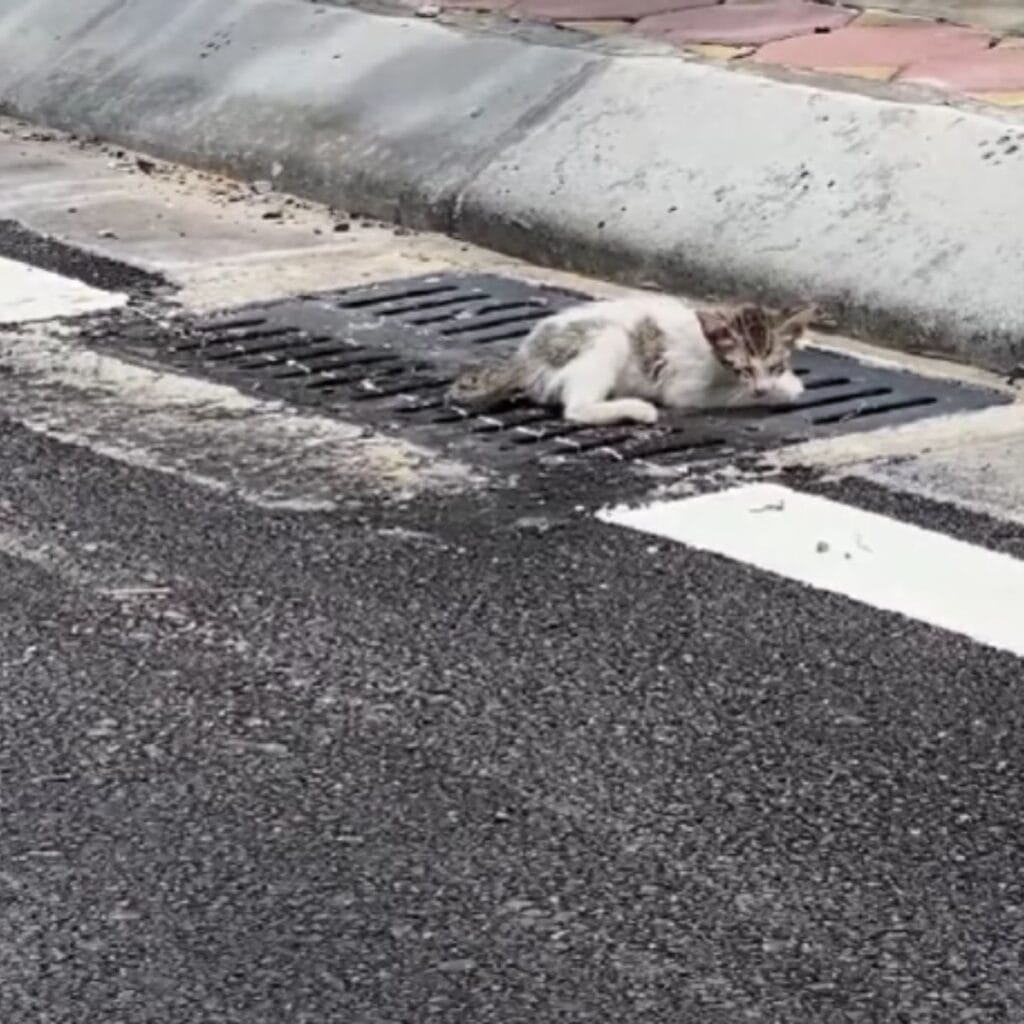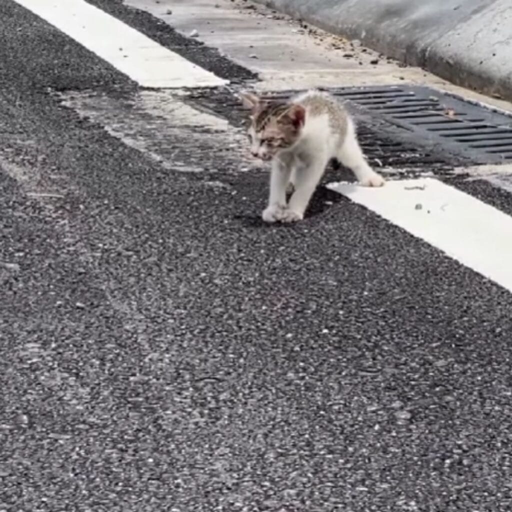 On one of the hottest days of the year, when the pavement felt more like a frying pan than a road, a tiny kitten lay helplessly in the middle of it all.