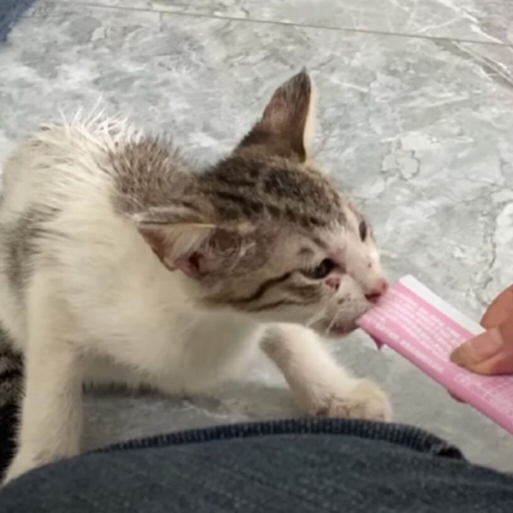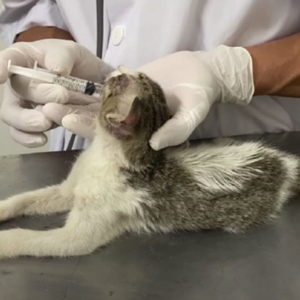 Every second counted. The kitten was given fluids, drop by drop, through a syringe.