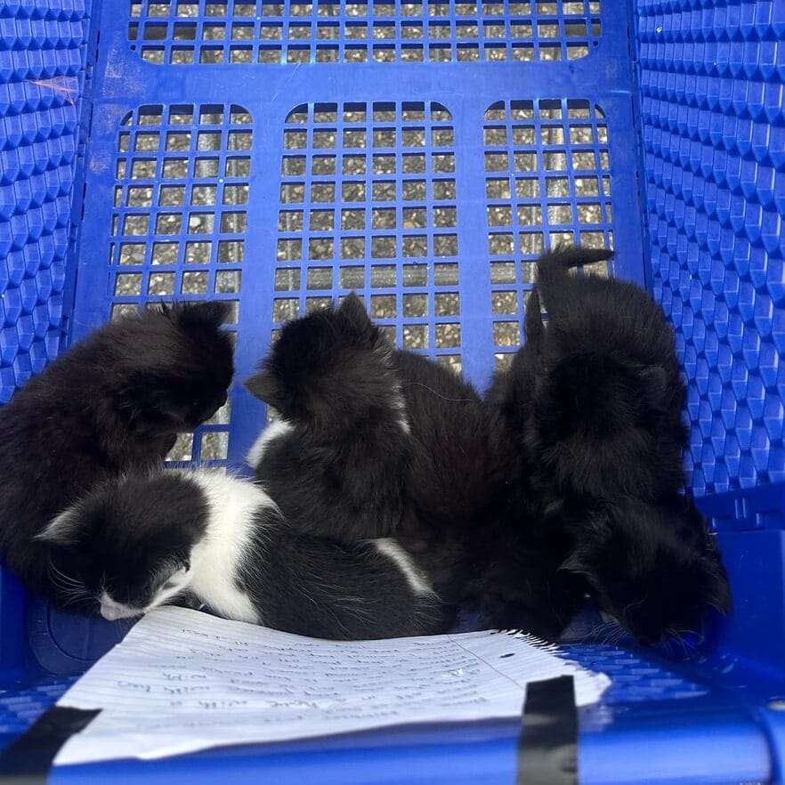 For now, they are warm, fed, and safe, a far cry from the shopping cart they were found in.