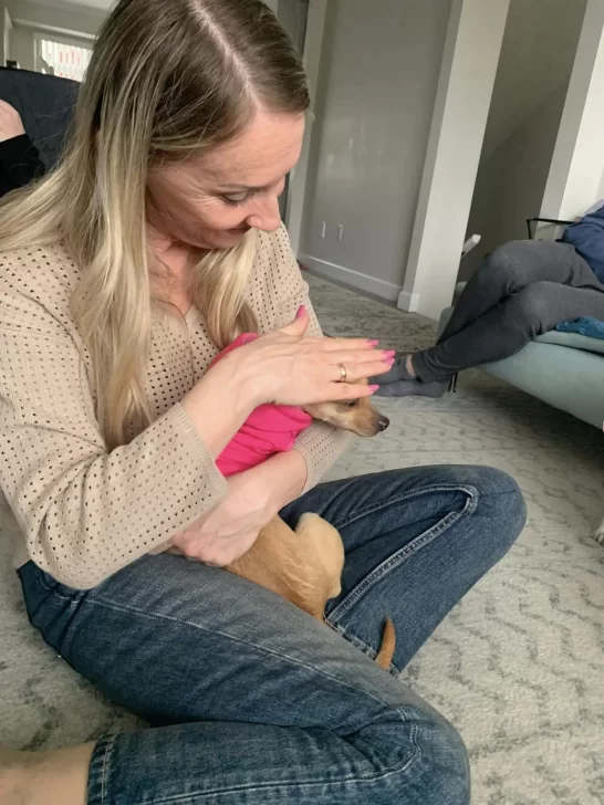 The team at Camino Pet Hospital welcomed Tiny with open arms, making sure she was healthy, clean, and well-fed. A few weeks later, once she was cleared for adoption, Tiny found the perfect forever home.