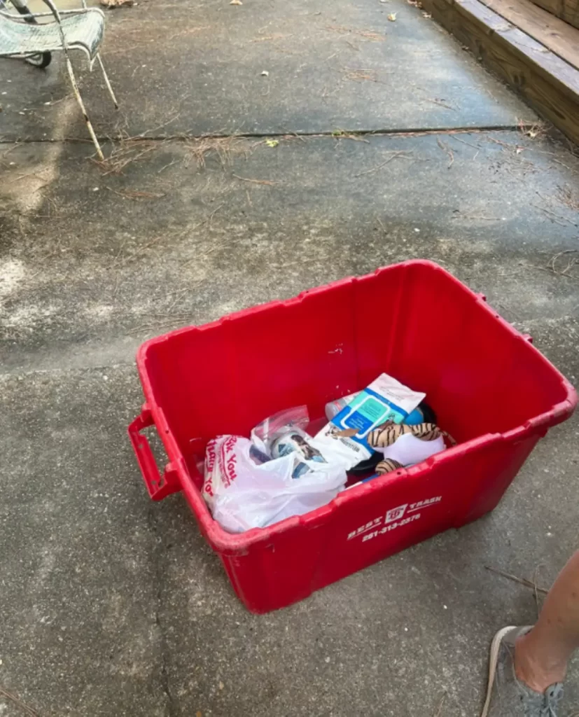 A few toys and a blanket had been tossed into the bin beside her, but it was clear she had been left there on purpose. Even worse, her paw was swollen and painful, proof that she was in need of medical care.