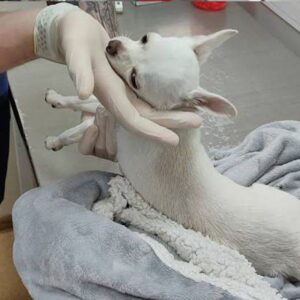 When TIH volunteers saw Odie’s photo, they didn’t hesitate. Though they usually focus on adult dogs with medical challenges, they couldn’t turn away from his tiny face.