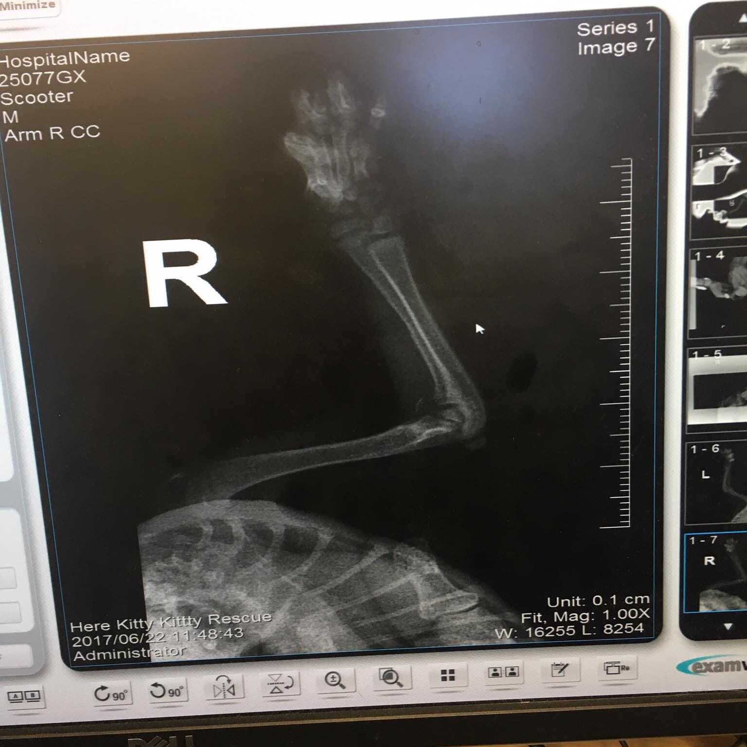 The veterinarians conducted some X-rays and found out that his front paws were affected by shortened muscles and tight ligaments, causing them to curl inwards painfully with every movement.