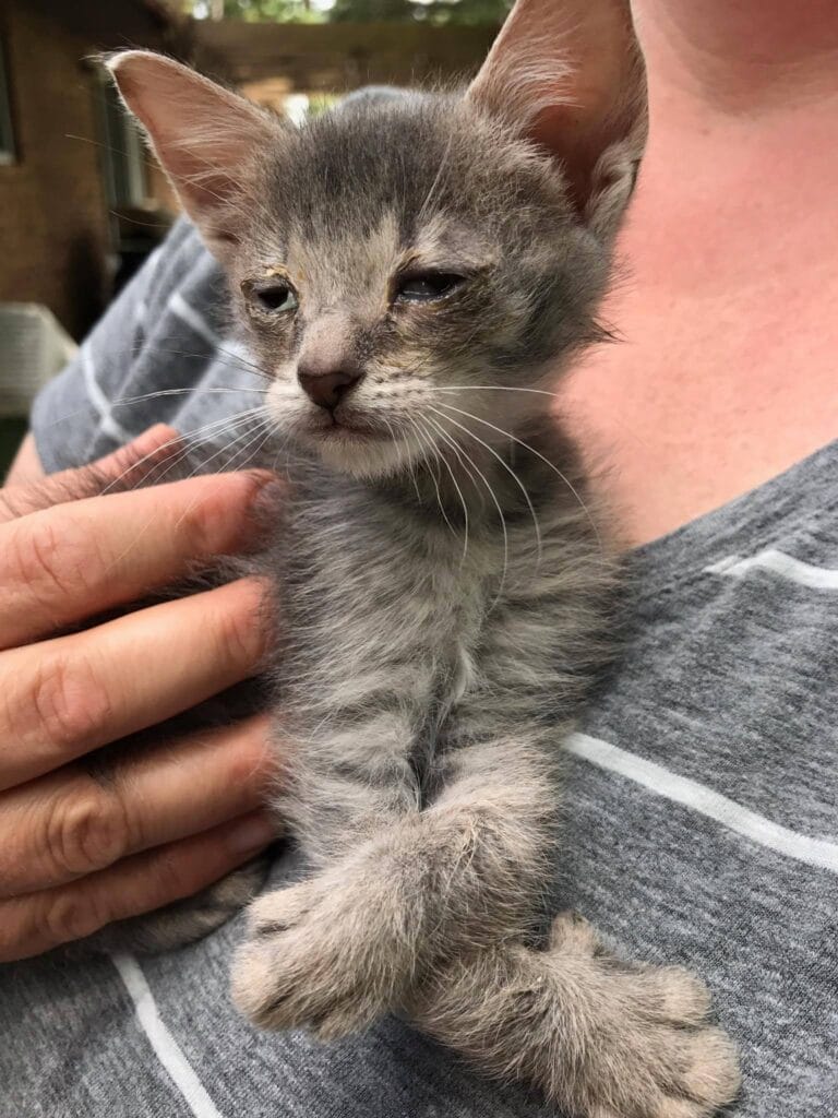 The kitten, who would later be affectionately known as Scooter, had clearly faced a harsh start in life.