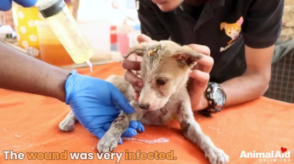 When the rescuers from Animal Aid Unlimited spotted him, time finally slowed down for the puppy.