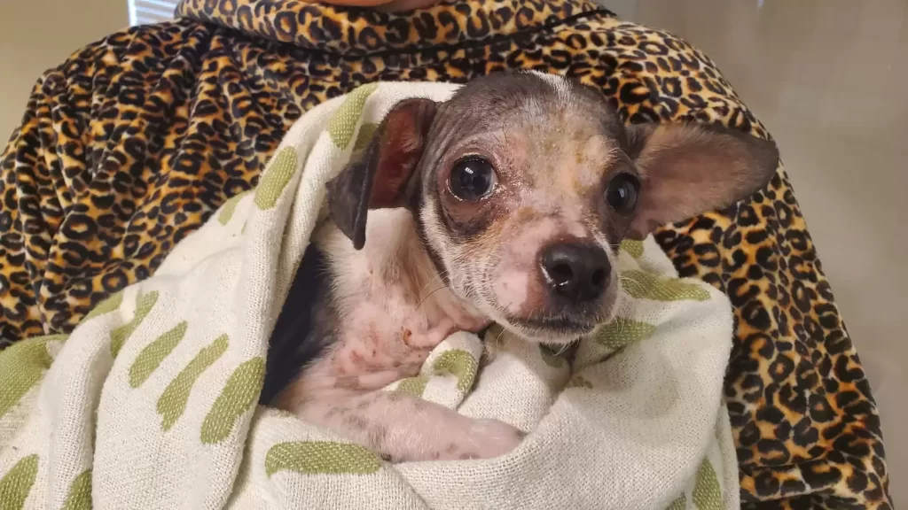 His fur was almost gone, his skin raw from a painful case of mange that left him vulnerable and visibly different from other dogs.