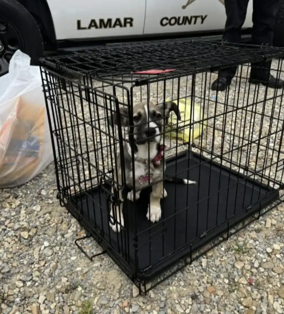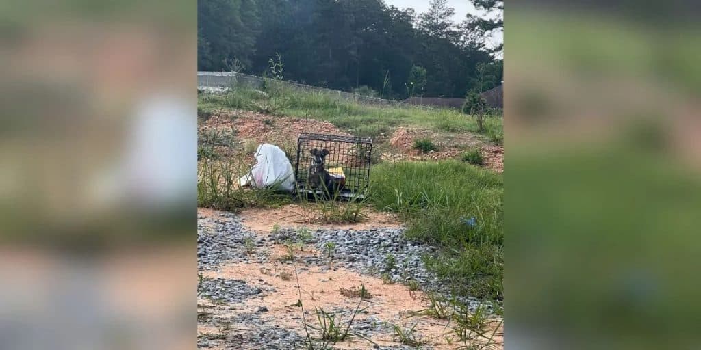 A baby dog stuck in a crate, dumped like she didn’t deserve a chance.