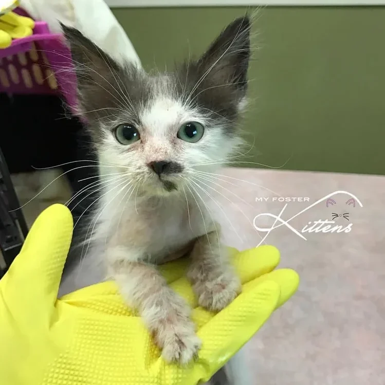 Covered in illness, nearly bald, and weighing less than a pound, the tiny five-week-old kitten didn’t look like she had much time left.