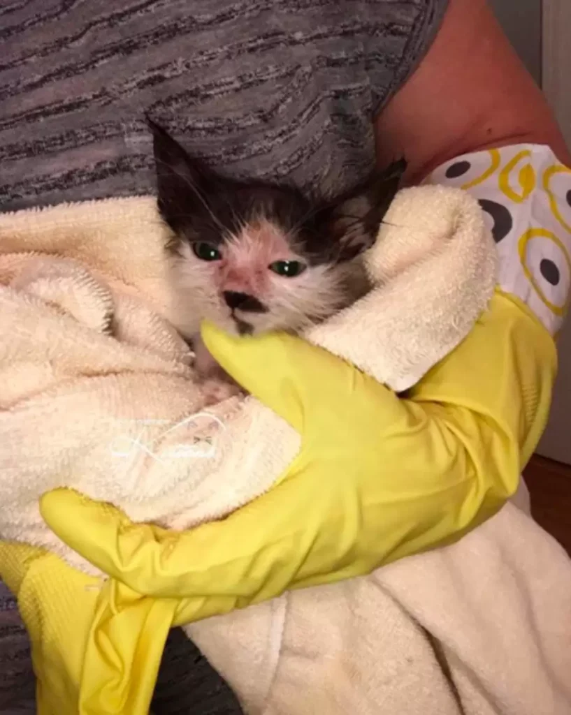 But Bunny kept hanging on. Through countless baths, tube feedings, and round-the-clock care, the frail kitten slowly began to show signs of life.