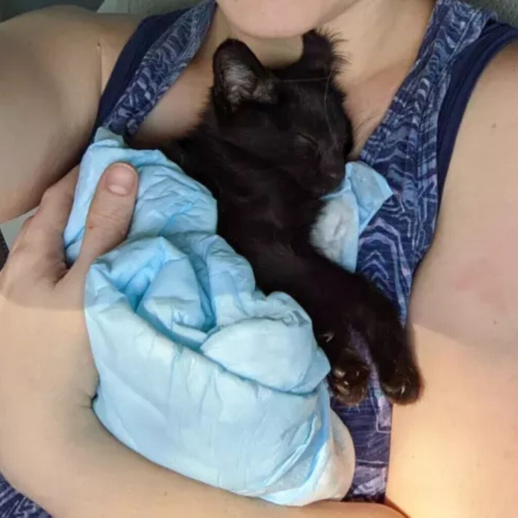 When they arrived, they were stunned. The kitten, later named Shadow, looked heartbreakingly fragile.