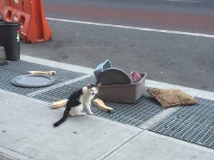 Someone abandoned a cat in Brooklyn, New York, on Wednesday. On Nostrand Avenue, he was abruptly abandoned. His litter box and other cat necessities were just next to him.