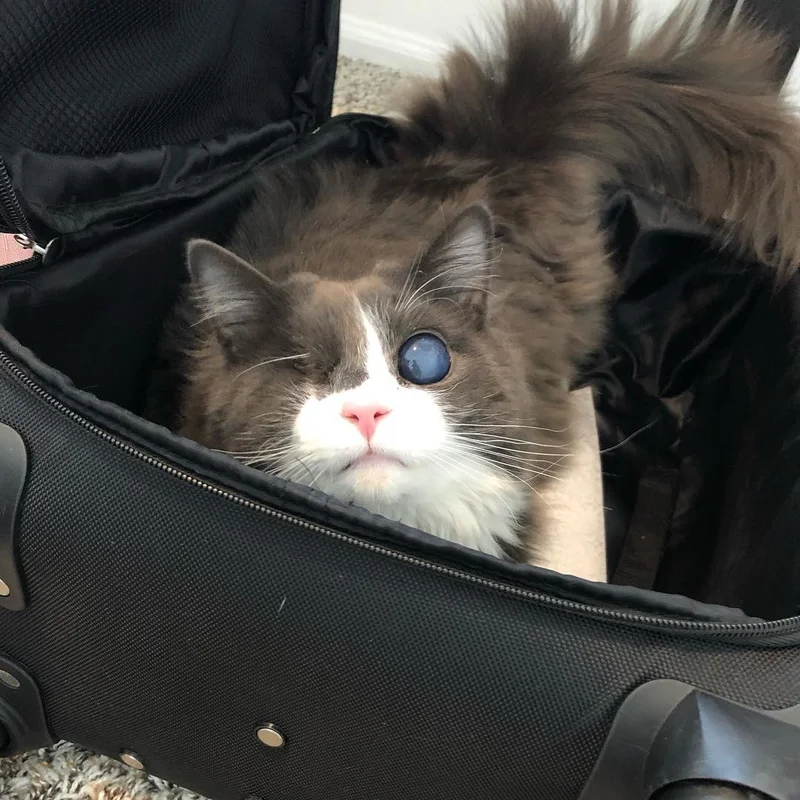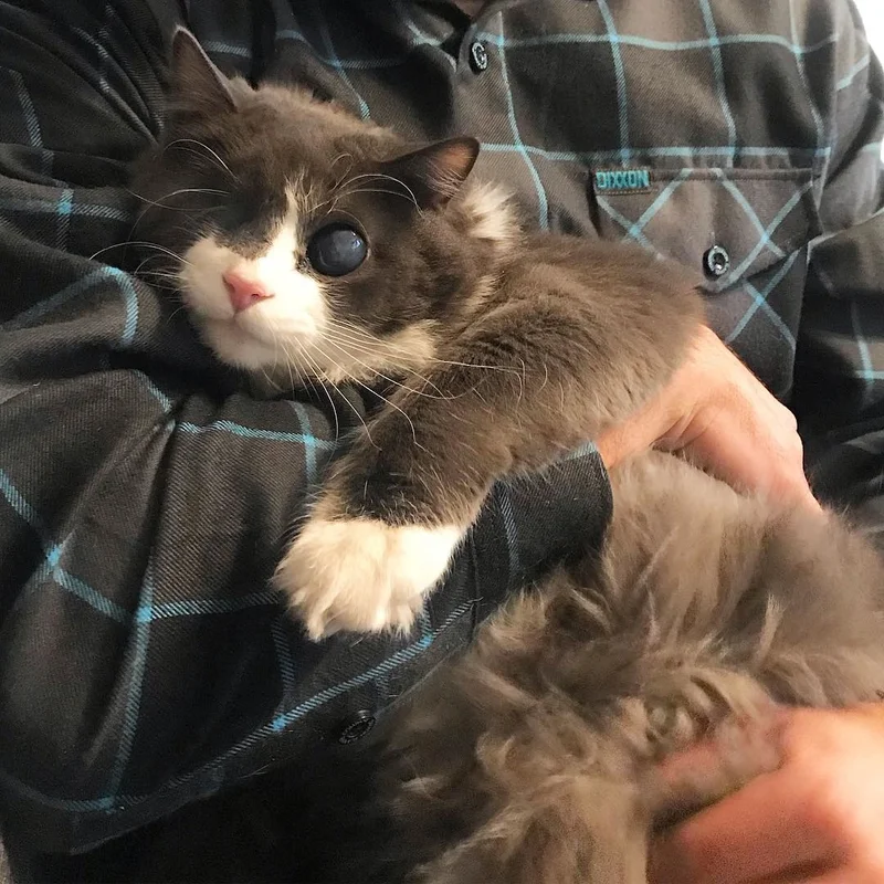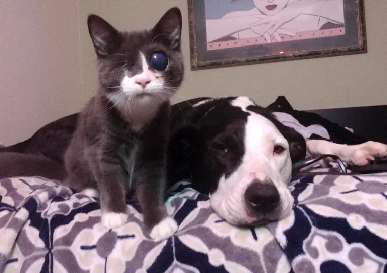 The little cat had been born blind due to a rare condition called congenital glaucoma.