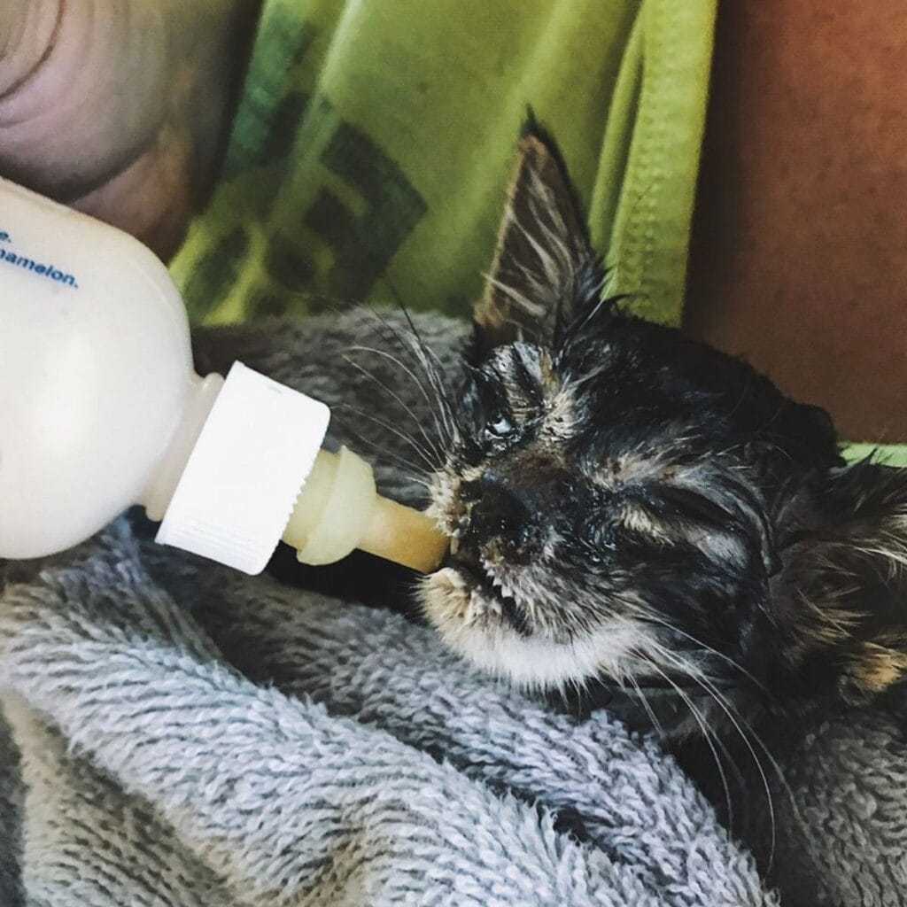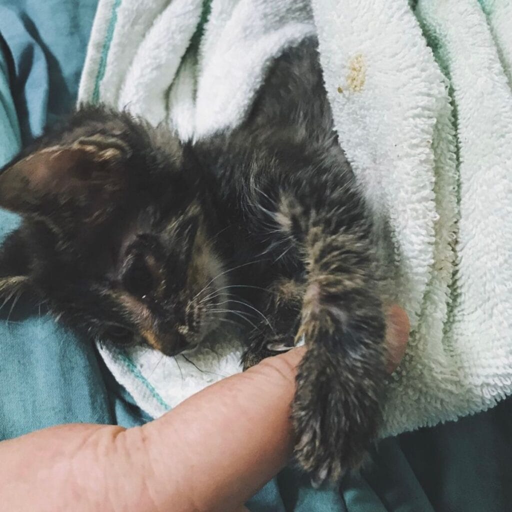 She and her husband wrapped the kitten in a towel, uncertain if she’d even make it through the night.