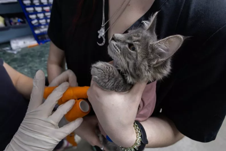 The vet explained that they could not work on stray cats unless the animal had an owner.